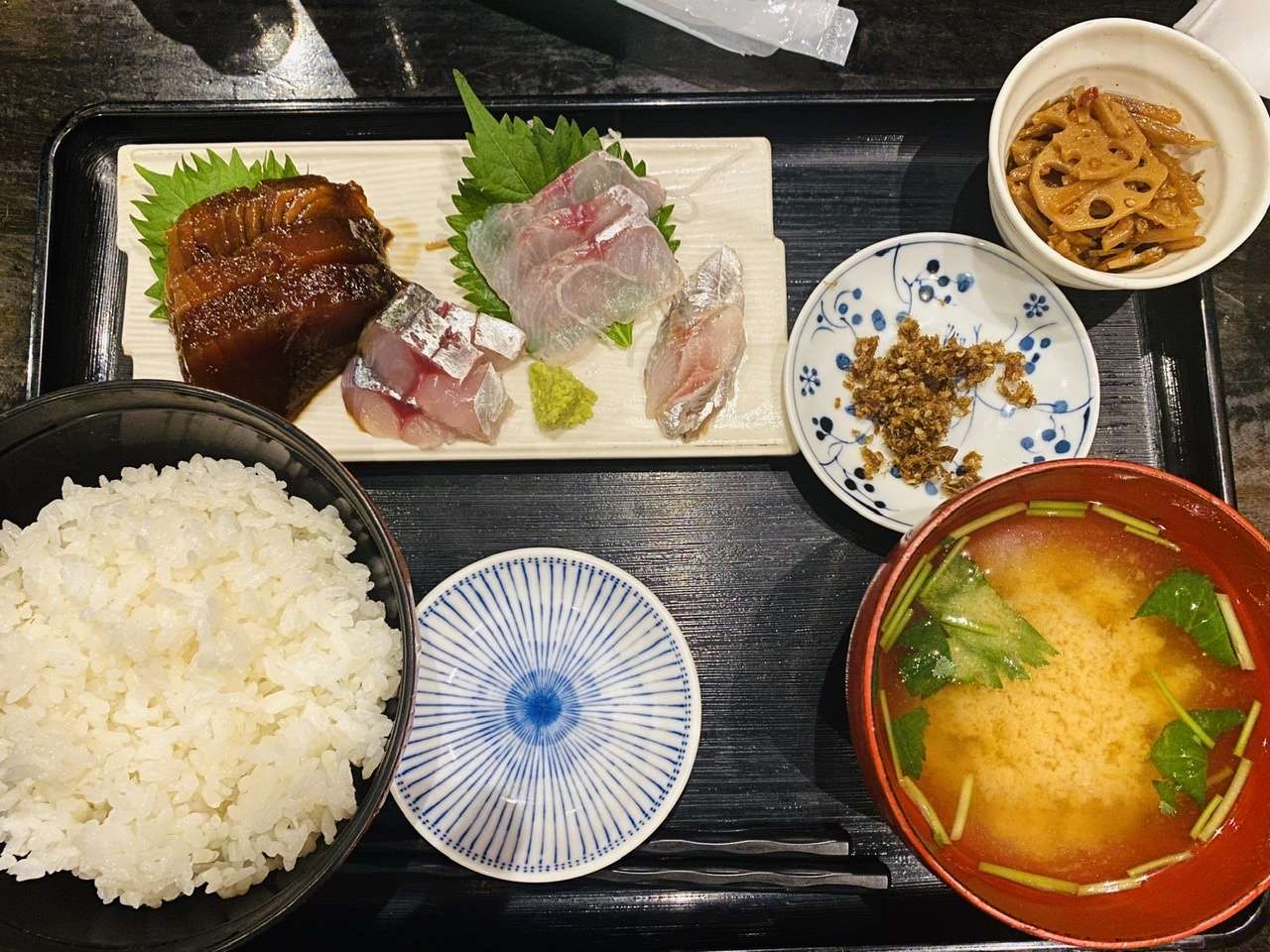 大田市場の基集さんでお刺身定食(900ご飯おかわり自由)いただきました。二杯おかわりしました。今度は海鮮丼食べます!